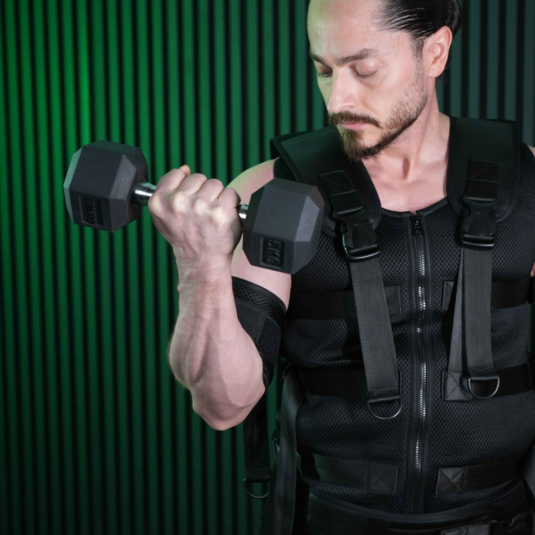 🔹 تایتان EMS: ۴ جلیقه حرفهای با سایزبندی دلخواه و متریال ضدحساسیت و ضدتعریق، که برای جلسات تمرینی متوالی و استفاده طولانیمدت ایدهآل است.